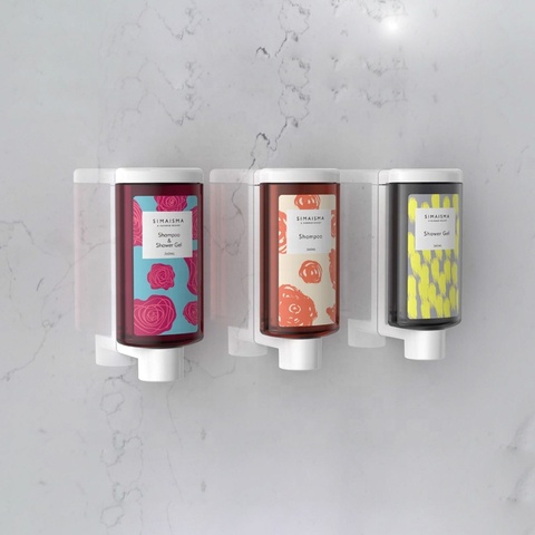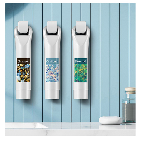 ウォールマウントシャワーシャンプーディスペンサーホテルのアメニティとバスルームの装飾のための防水ラベル付きドリルフリーデザイン